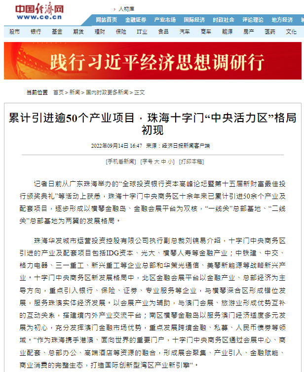 2022年9月14日,我校副校長、澳門社會經濟發展研究中心主任葉桂平教授接受《經濟日報》採訪,就珠海十字門中央商務區發展發表了相關看法。報導內容節選如下: